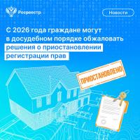Теперь у граждан появится возможность обжаловать решения о приостановлении регистрации прав в досудебном порядке!