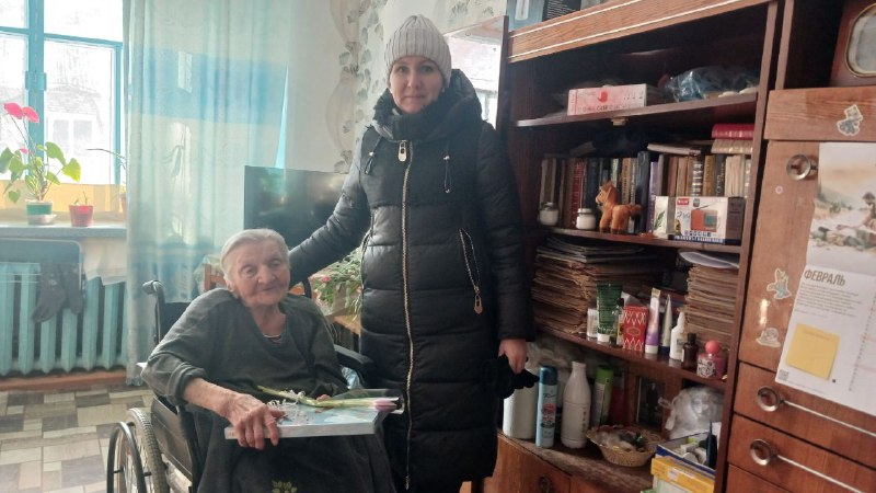 Сегодня сотрудники администрации посетили вдову участника Великой Отечественной войны и поздравили её с наступающим 8 Марта.