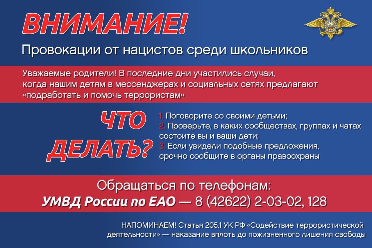 В последние дни участились случаи, когда детям в мессенджерах и социальных сетях предлагают «подработать и помочь террористам». Это очень опасно и незаконно. Родителям важно помнить: