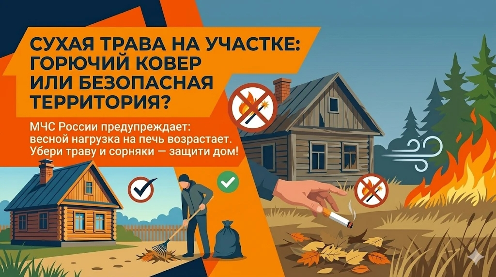 С таянием снега обнажается главная угроза весеннего пожароопасного периода — сухая прошлогодняя трава и сорняки. Под лучами солнца они высыхают за считанные часы, превращаясь в идеальное топливо. Неконтролируемый пал, брошенный окурок или искра от костра могут превратить этот сухой ковёр в ревущее пламя за секунды. Огонь распространяется мгновенно, перекидываясь на заборы, дома и хозпостройки.